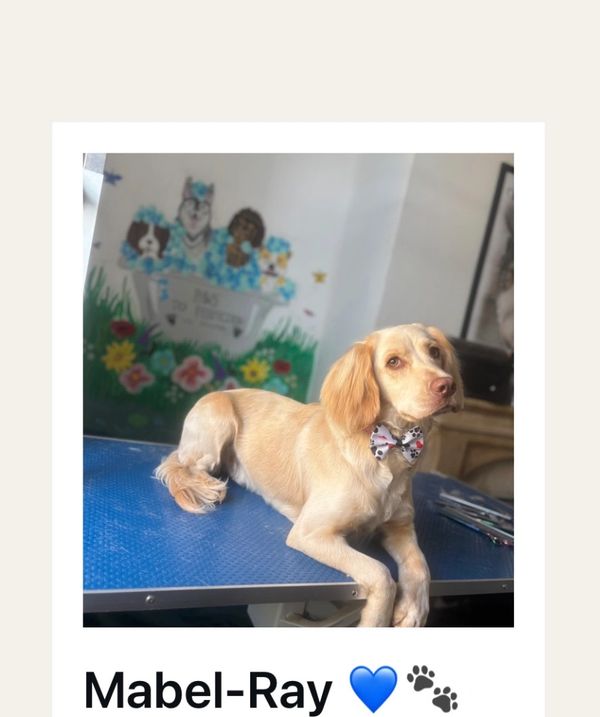 Here’s 9 month old Mabel Ray the sprocker after her de-shed & outline trim 💙🐾🐶